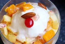 Fruit salad with ice cream